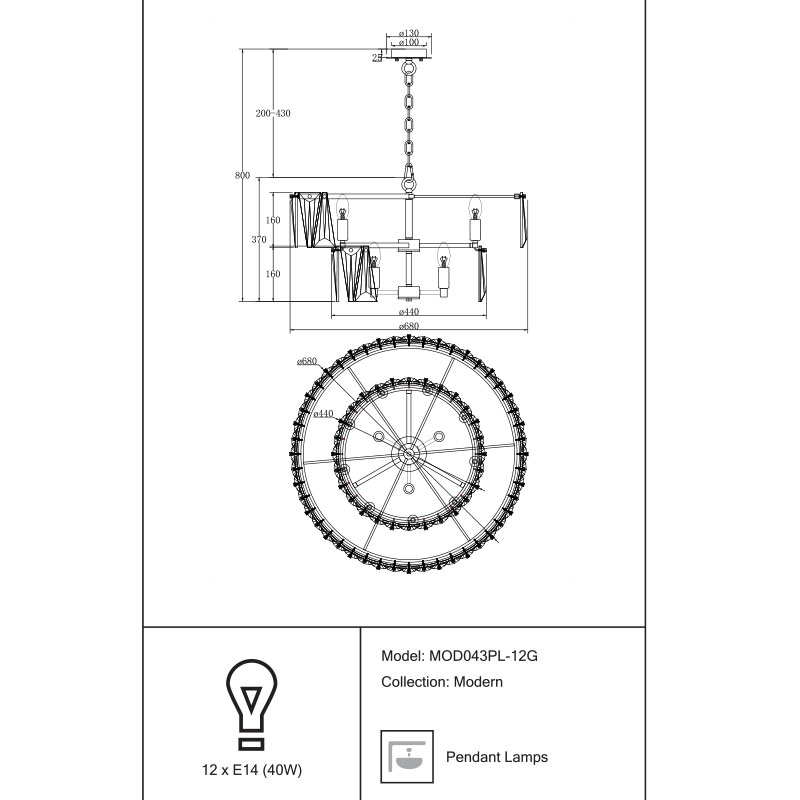 Брой светлоизточници: 12 крушки