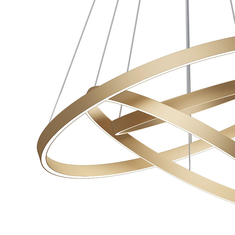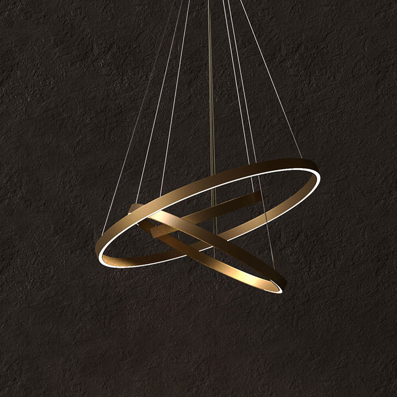 LED полилей Rim е изработен от висококачествен алуминий и се предлага в черен или месингов цвят, съчетавайки модерна визия и функционалност. Трите ринга с вградено LED осветление създават елегантен и балансиран ефект, осигурявайки равномерно разпръсната светлина.