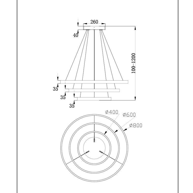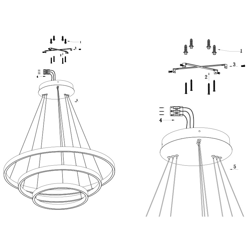 Със своята минималистична геометрия, този полилей е подходящ за съвременни интериори, като внася стил и усещане за простор. Можете да регулирате дължината на кабелите преди монтаж и така да създадете различна визия на висящата лампа, според нуждите на помещението. Идеален избор за хол, хотел, офис, трапезария или заведение.