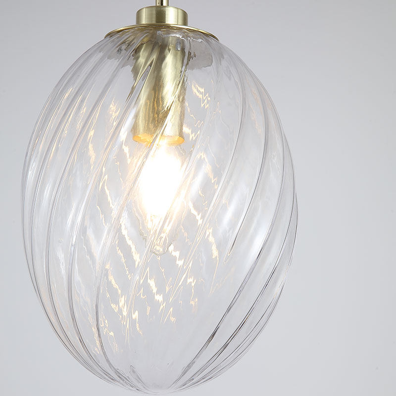 Прозрачният стъклен абажур позволява светлината да се разпространява свободно, създавайки приятно и топло осветление. Декоративната текстура на стъклото добавя дълбочина и визуален интерес, като едновременно с това подчертава красотата на избраната крушка.