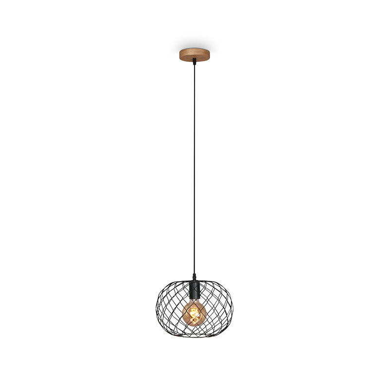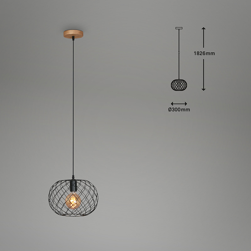 Осветително тяло - винтидж полилей WINKI, изработен от дърво и дифузер от черен метал. Дизайнът на осветителното тяло е подходящ за осветление за всекидневна, осветление за коридор, осветление за заведение. Производител BRILO, Германия.