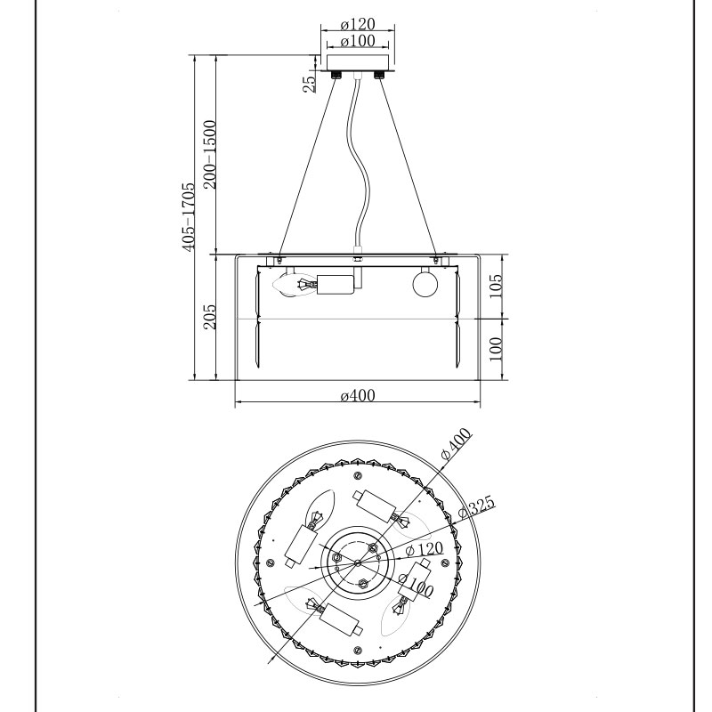 Височина на полилея (mm): 405 - 1705