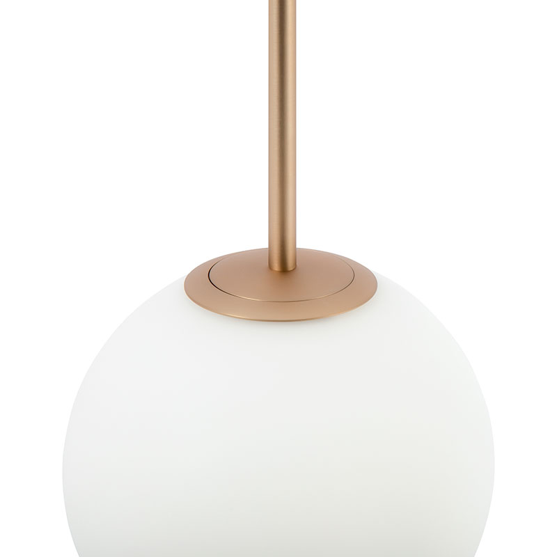 Осветителното тяло - единичен полилей Basic form внушава с модерен стил и минималистичен дизайн. Висящата лампа е изработена от метална основа в златист цвят, комбинирана със сфера от матово бяло стъкло.