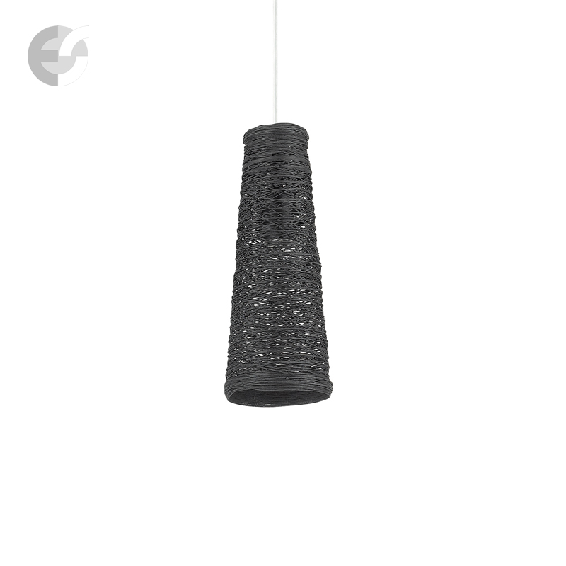 Осветително тяло - оригинален полилей Basket с модерна визия, с хромирана метална основа и атрактивен абажур, изработен от черен канап. Подходящ за осветление на кухня, осветление на всекидневна или осветление на заведение. Производител Идеал Лукс, Италия.