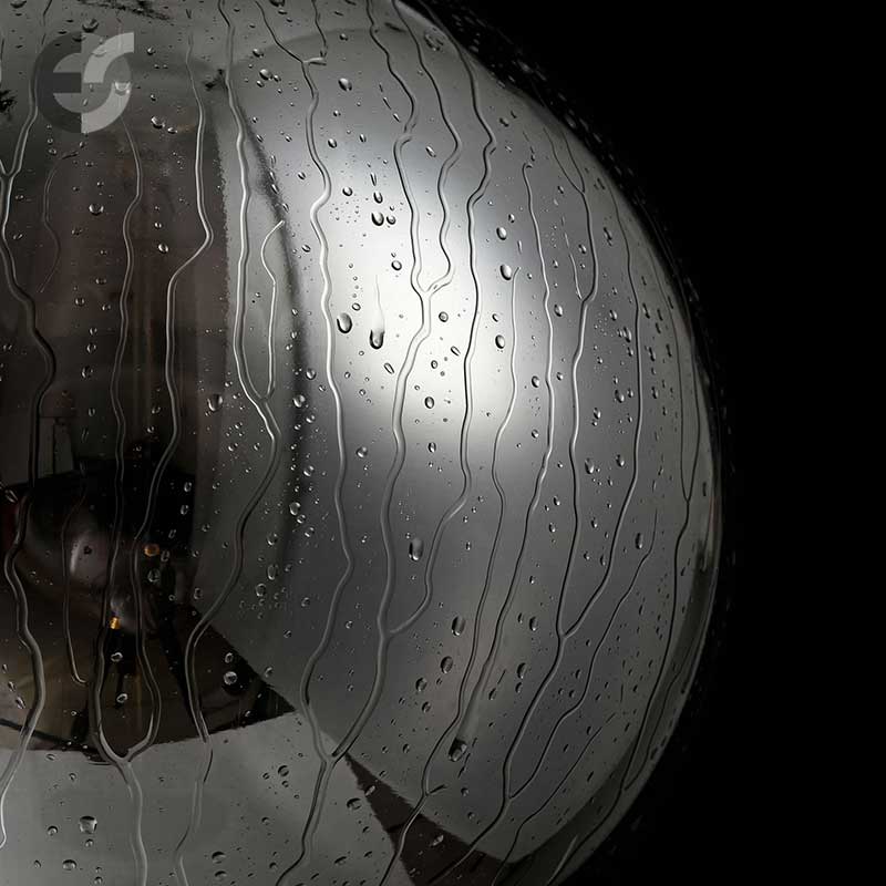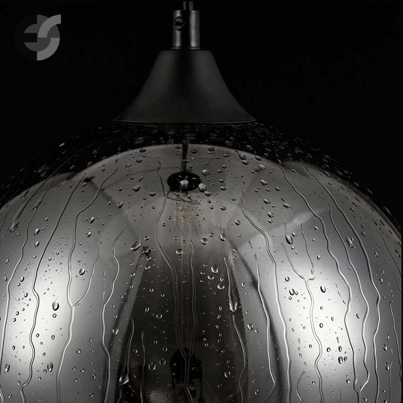 Полилей Bergen е изработен от метал в цвят черен и сферичен разсейвател от хромирано стъкло с ефект, наподобяващ пръски вода. Този дизайн създава впечатление за капки дъжд, уловени в движение, които придават дълбочина и динамика на светлината.