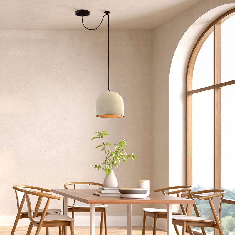 Полилей Broni е изработен от метал в черен цвят, с разсейвател от бетон, съчетавайки индустриален и модерен стил. Височината може да се регулира чрез държач, който се монтира на тавана и позволява адаптация към различни помещения и нужди.