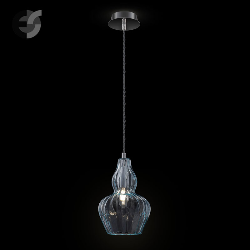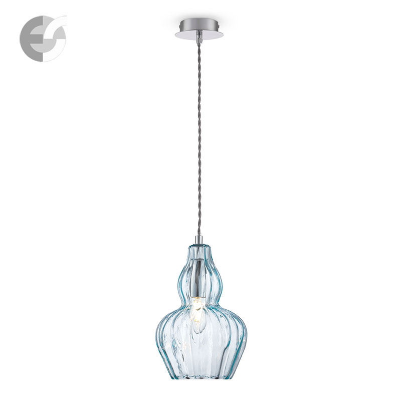 Полилей Eustoma е изработен от метал в цвят никел и издухано стъкло в нежен син оттенък, което пречупва светлината и създава невероятна игра на светлина и сенки.