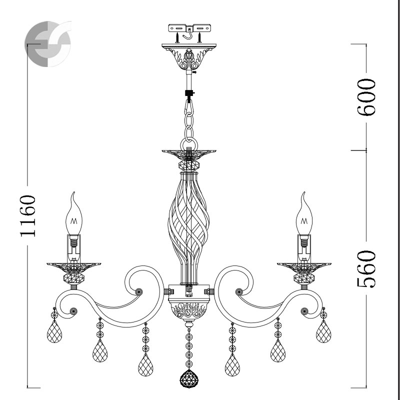 Полилей тип свещ Grace е изработен от метал в цвят месинг. Конструкцията на осветителното тяло е с извити орнаменти и симетрично подредени висящи кристали в капковидна форма, които подчертават класическия му стил. Разсейвателите наподобяват свещи, създавайки мека и топла атмосфера.