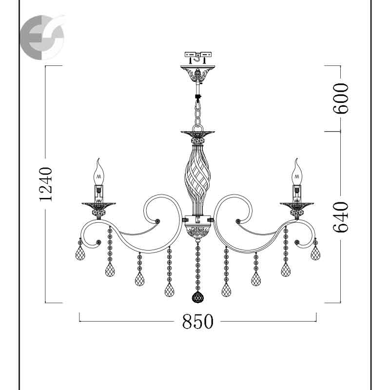 Класическият полилей е тип свещ с конусовидни разсейватели. Осветителното тяло е с верижно окачване, което позволява регулиране на височината, преди монтаж.