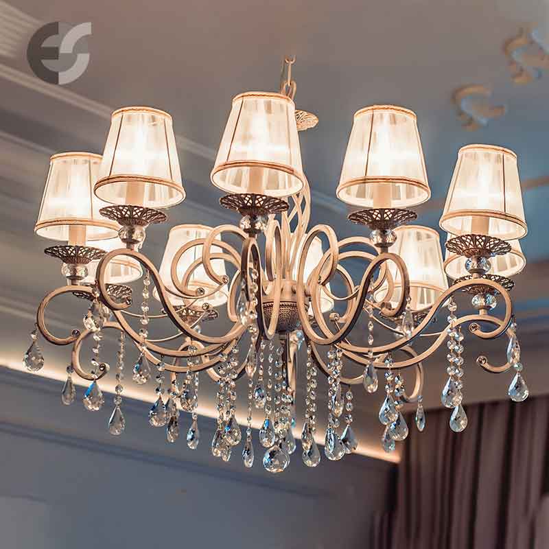 Дизайнът на полилея е подходящ за осветление за хотел, спалня или всекидневна.