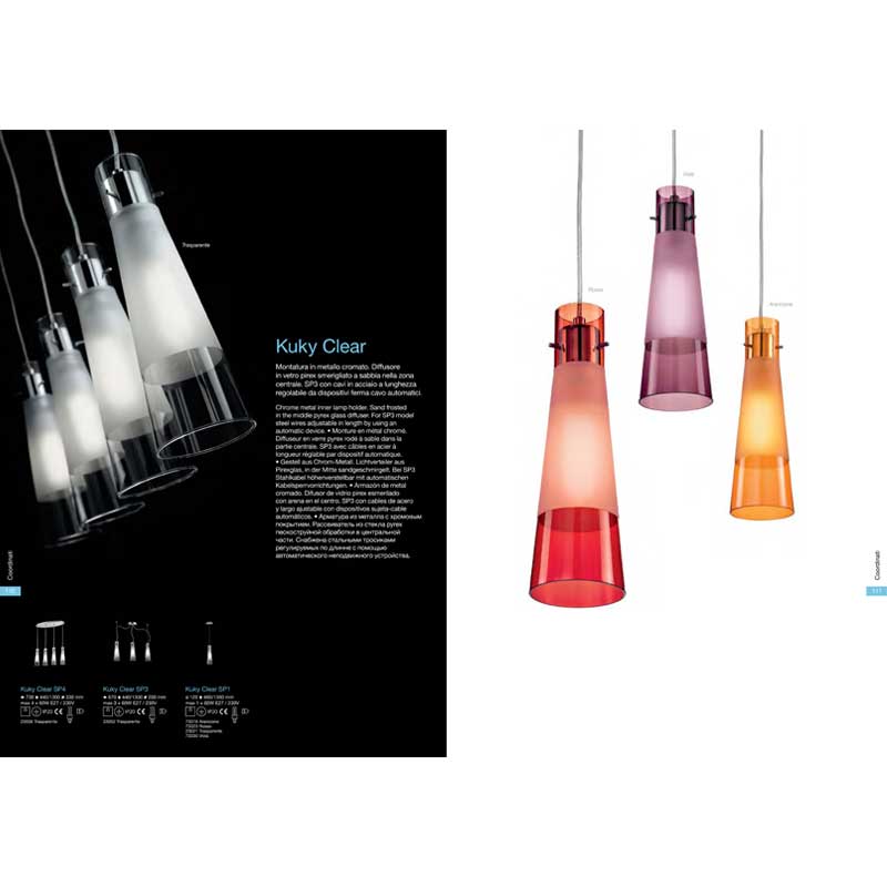 Полилей Kuky Clear с изчистен и модерен дизайн, с метална хромирана основа и държачи и дифузери от прозрачно огнеупорно стъкло с матирана средна част. Производител Идеал Лукс, Италия.