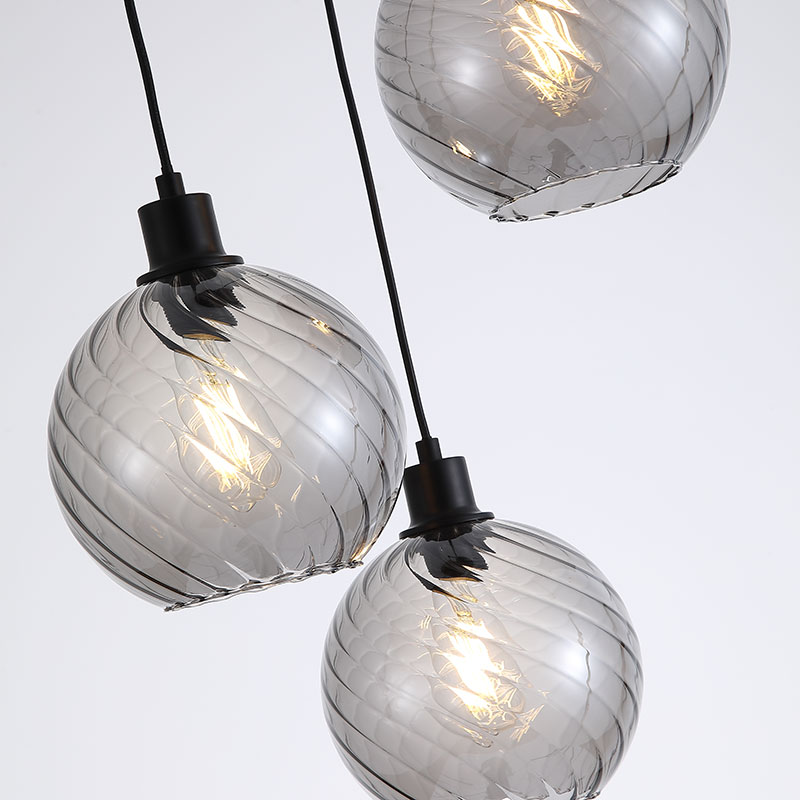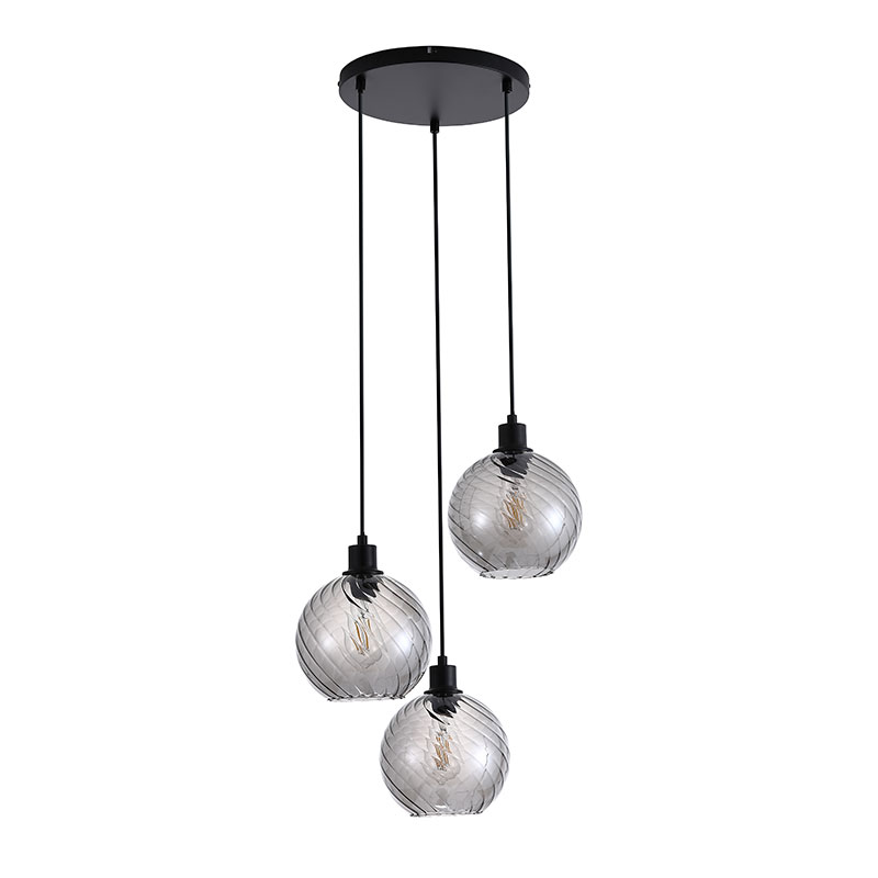 Полилей Radiance е изработен от метал в черен цвят, комбиниран с разсейватели от стъкло в опушен нюанс. Висящата лампа е с три светлоизточника, разположени на различни височини в стилна multi-drop композиция, която придава динамика и фин декоративен акцент на интериора.