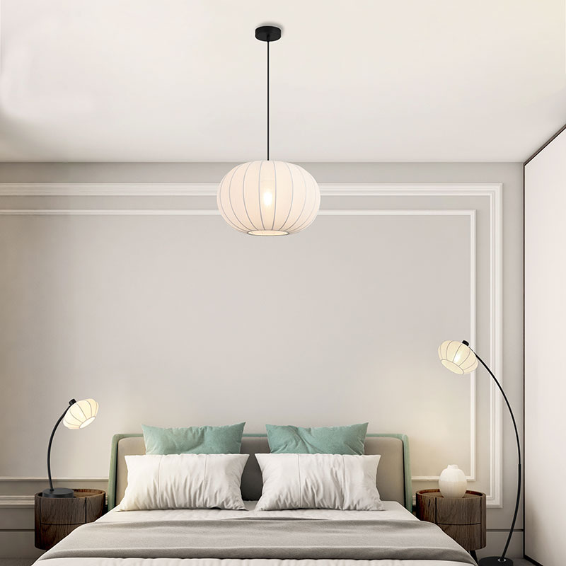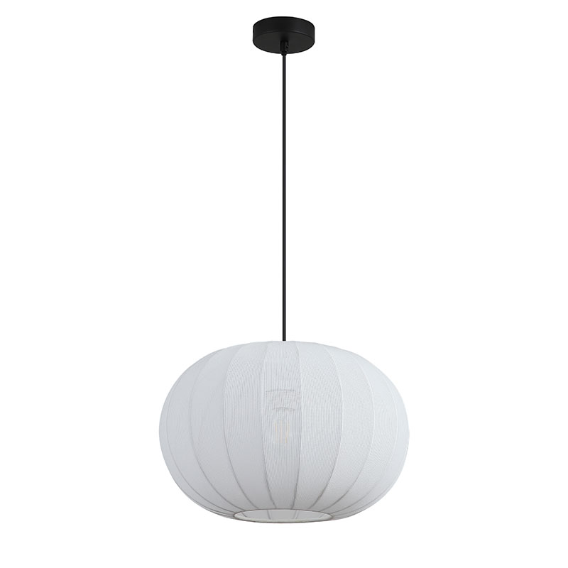 Текстилният абажур от плат и мека стомана създава топло и приятно осветление, като равномерно разпръсква светлината и допринася за уютна атмосфера в помещението. Полилеят е подходящ за осветяване на трапезария, дневна, спалня или кухненски кът.