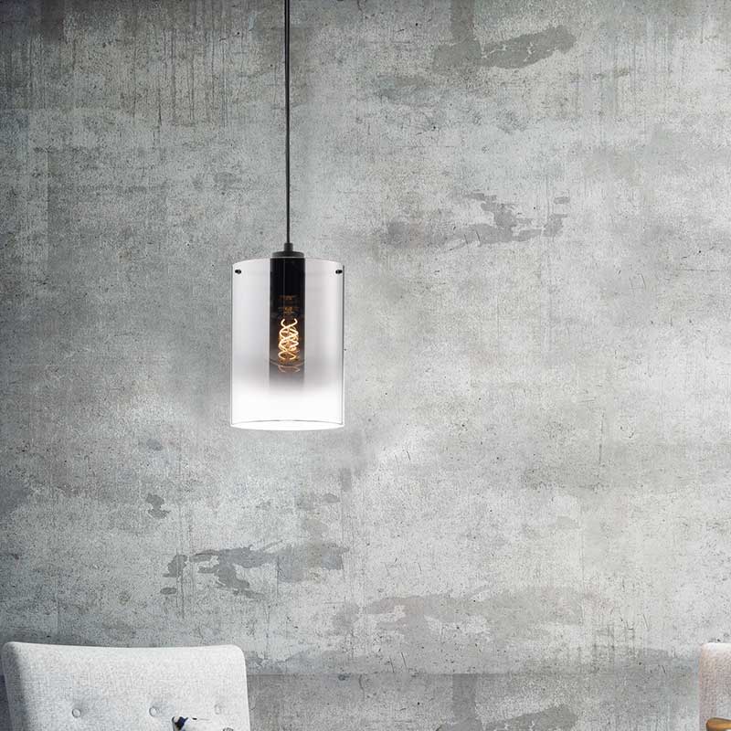 Полилей Samu, изработен от матиран метал в пясъчно-черен цвят с цилиндричен разсейвател от опушено стъкло. Осветителното тяло се предлага без крушка, с фасунга E27, което ви позволява да изберете светлоизточник според предпочитанията ви.