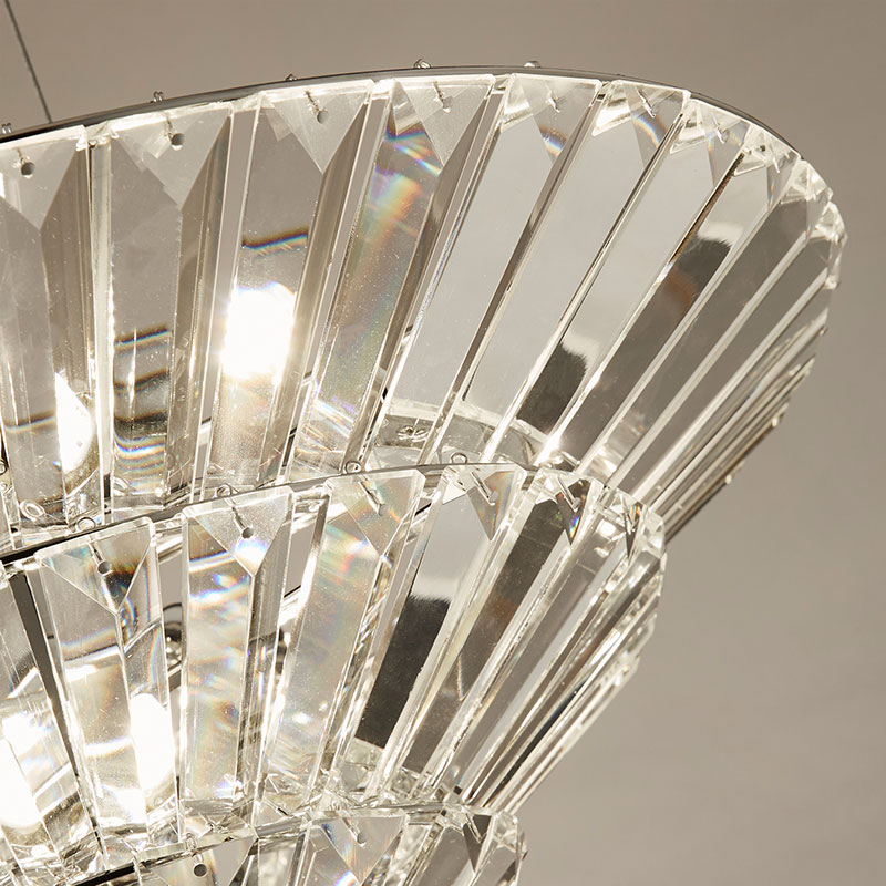 Полилей Savannah притежава конусoвидна форма, което го прави изключително атрактивен и стилен. Идеален е за модерни домове и апартаменти, които искат да демонстрират елегантност и внимание към детайлите. Изработен е от метал в хром, известен със своята здравина и дълготрайност. Акцентите от стъклени кристали неповторим блясък към всяка стая. Създайте мека, топла атмосфера във вашия дом. Полилей Savannah дава усещане за уют и топлина.