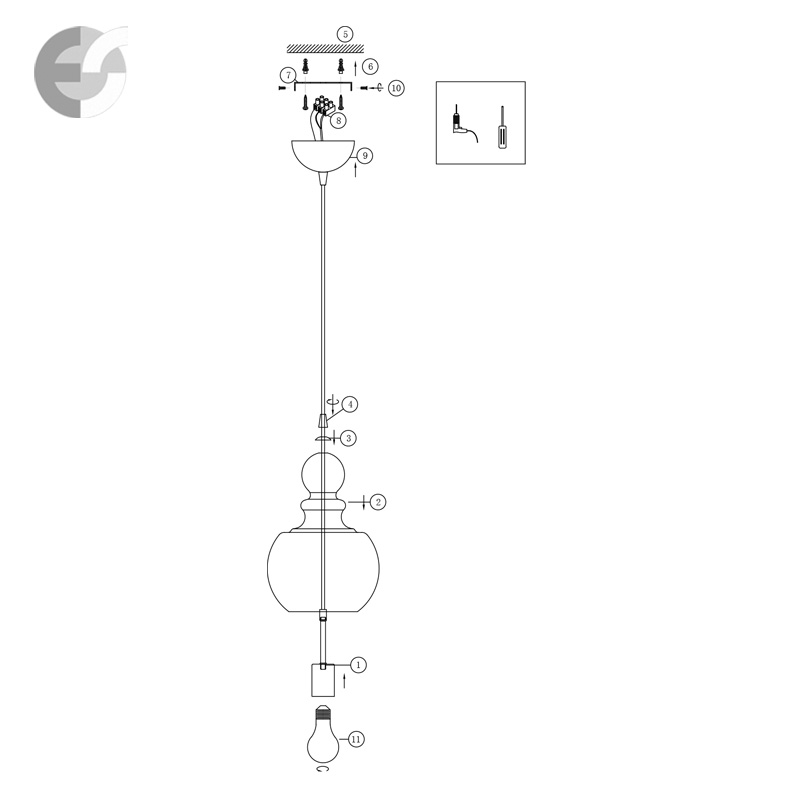 Полилеят е с възможност за регулиране на височината преди монтаж. Дизайнът на осветителното тяло е подходящо за осветление за заведение, над барплот или кухненски остров.