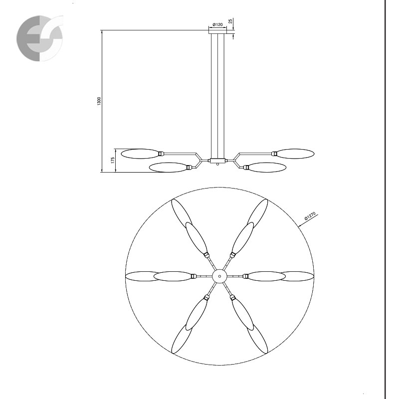 Полилей Ventura е изработен от метална основа в златист цвят и разклонени разсейватели от стъкло с хромирано покритие.