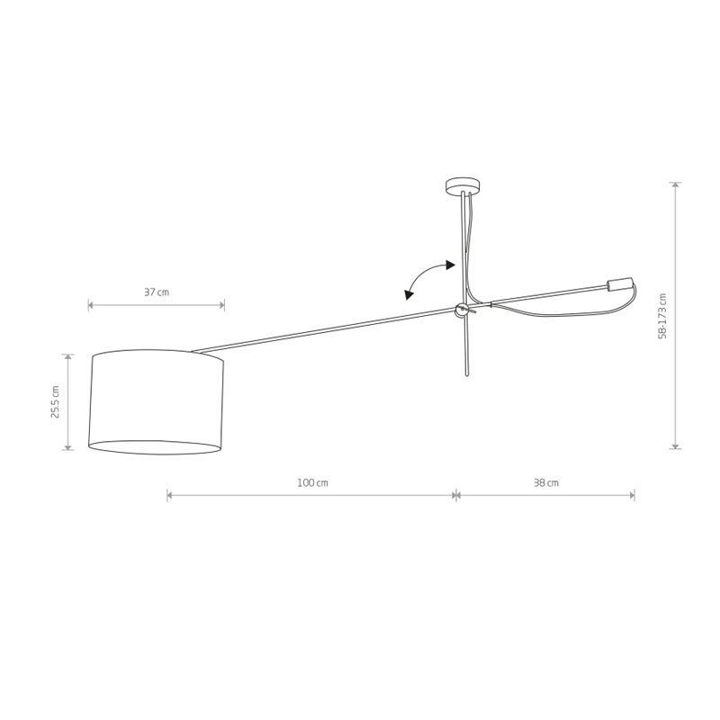 Осветително тяло - полилей VIPER WHITE, изработен от метална основа в бял цвят и регулируемо рамо с бял текстилeн абажур .