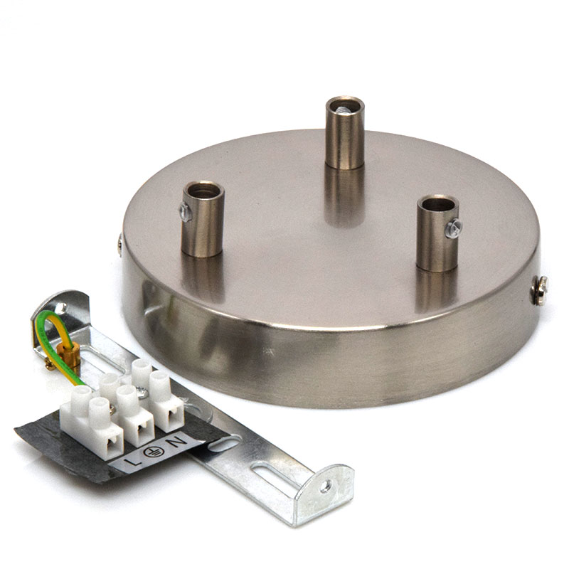 Розетка за монтаж на тавана с три извода. Розетката е с размери -D: 12 x H:2.5. В комплекта е включен метален стопер и метална пластина. Чрез опцията „комбинирай“ (над цената на артикула), можете лесно и удобно да направите лампа по ваш вкус и предпочитание. Комбинирайте розетката с различни кабели, глави и абажури и създайте осветително тяло със собствен дизайн. Производител Coup Light.