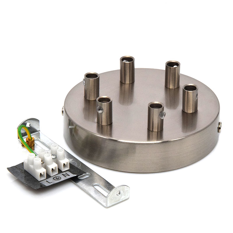 Розетка за монтаж на тавана с шест извода. Розетката е с размери -D: 12 x H:2.5. В комплекта е включен метален стопер и метална пластина. Чрез опцията „комбинирай“ (над цената на артикула), можете лесно и удобно да направите лампа по ваш вкус и предпочитание. Комбинирайте розетката с различни кабели, глави и абажури и създайте осветително тяло със собствен дизайн. Производител Coup Light.
