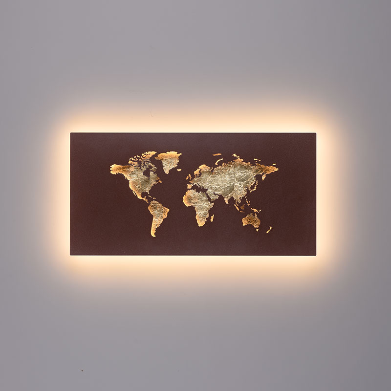 Осветително тяло - светещата карта на света за стена, която обогатява вашето пространство с уникален декоративен акцент. Тази карта е изработена от метал в ръждиво кафяв цвят и има размери 60 на 30 см. Добавете светещата карта на света към вашия дом или офис и се наслаждавайте на неговата уникална визия и атмосфера, която тя създава. Производител Paul Neuhaus, Германия.