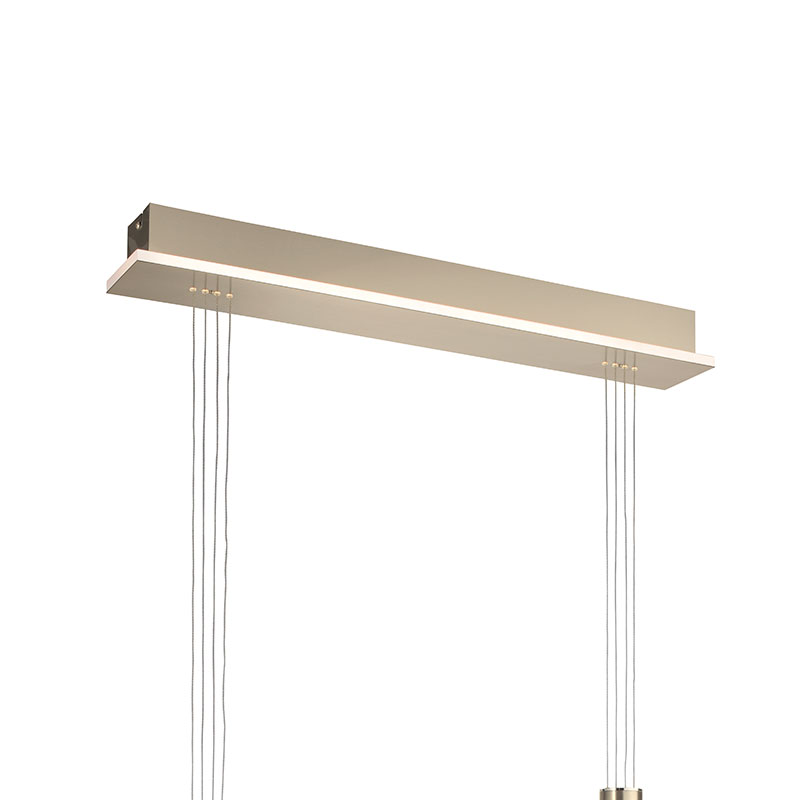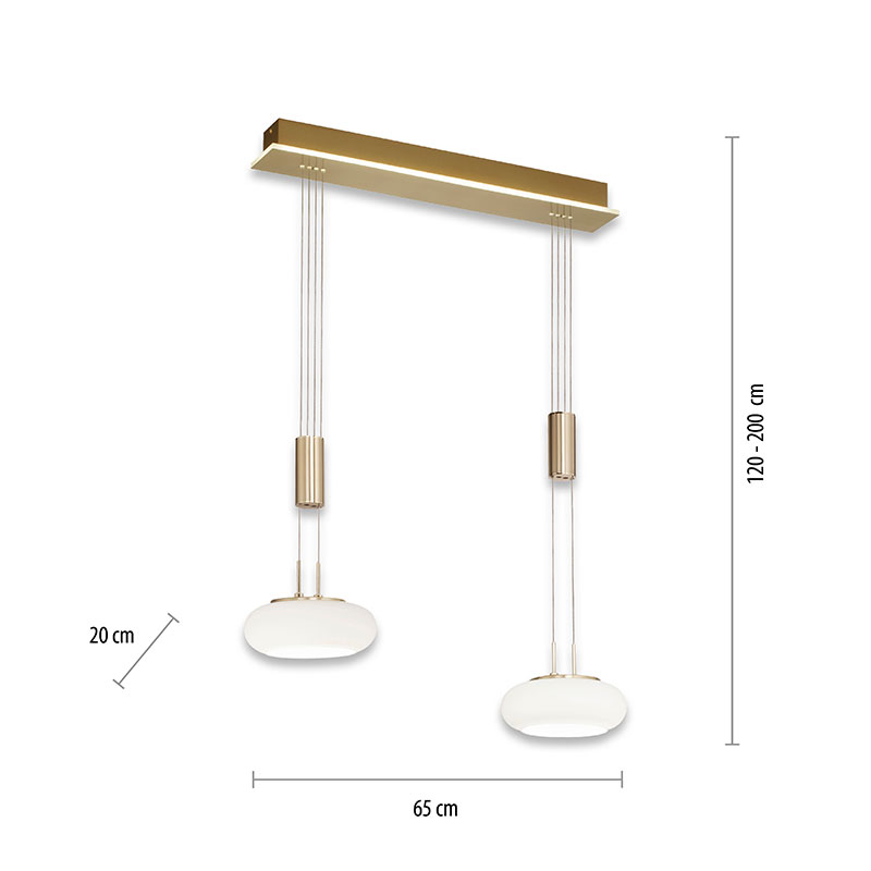 Осветително тяло - Умен LED полилей в калсически дизайн, изработен от метал и разсейвател от стъкло. Полиелят е идеалното решение за монтаж в трапезарията или над масата за кафе. Основата на лампата също е със осветление като добавя мека и приятна индиректна светлина. Можете да използвате тежестта на тялото, за да регулирате неговата височина - 1200 - 2000 mm.