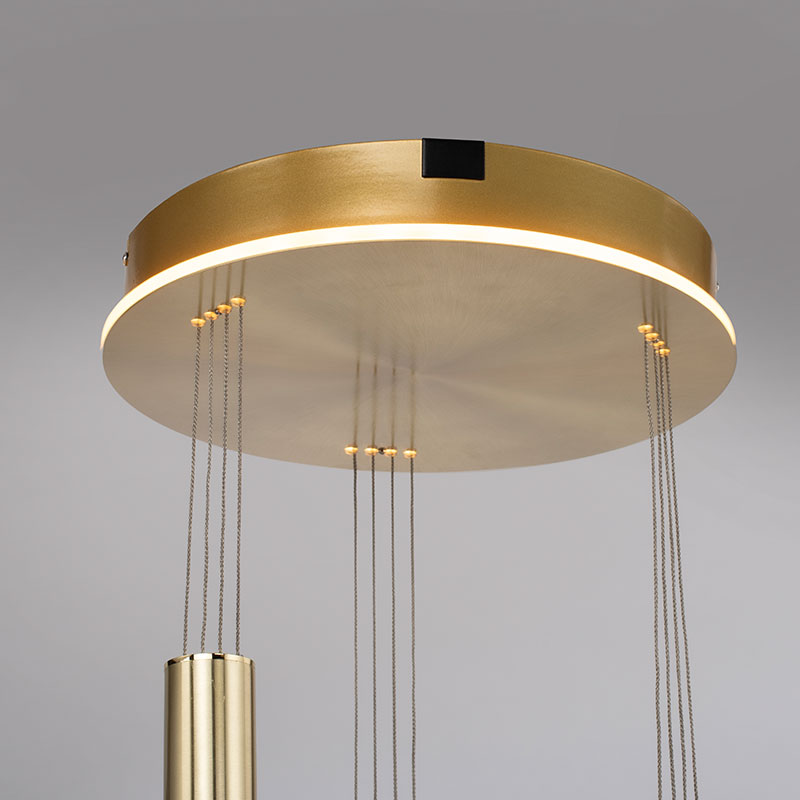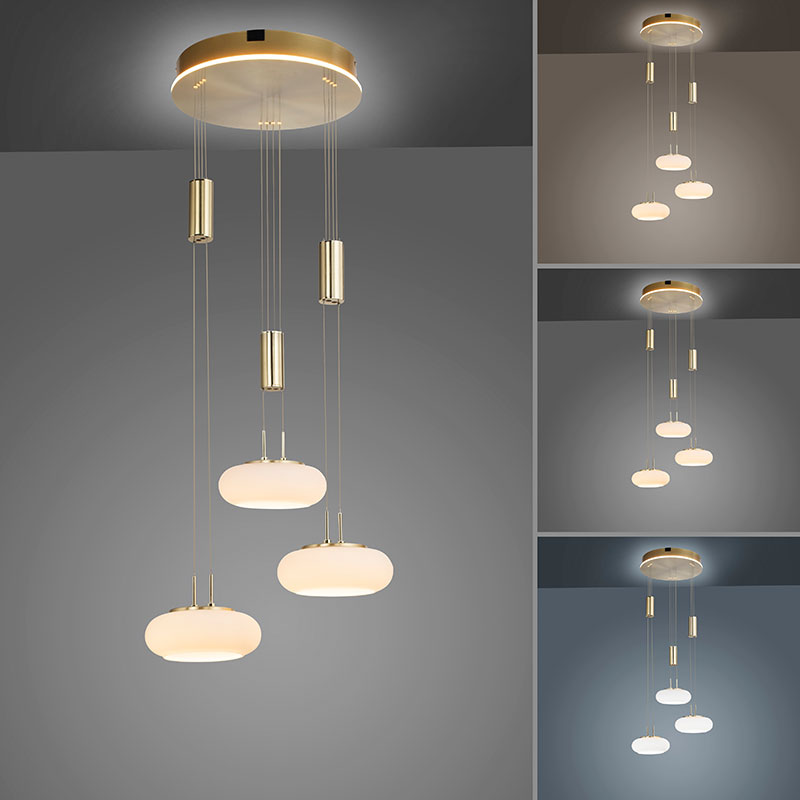 Осветително тяло - Умен LED полилей в калсически дизайн, изработен от метал и разсейвател от стъкло. Полиелят е идеалното решение за монтаж в трапезарията или над масата за кафе. Основата на лампата също е със осветление като добавя мека и приятна индиректна светлина. Можете да използвате тежестта на тялото, за да регулирате неговата височина - 1200 - 2000 mm.