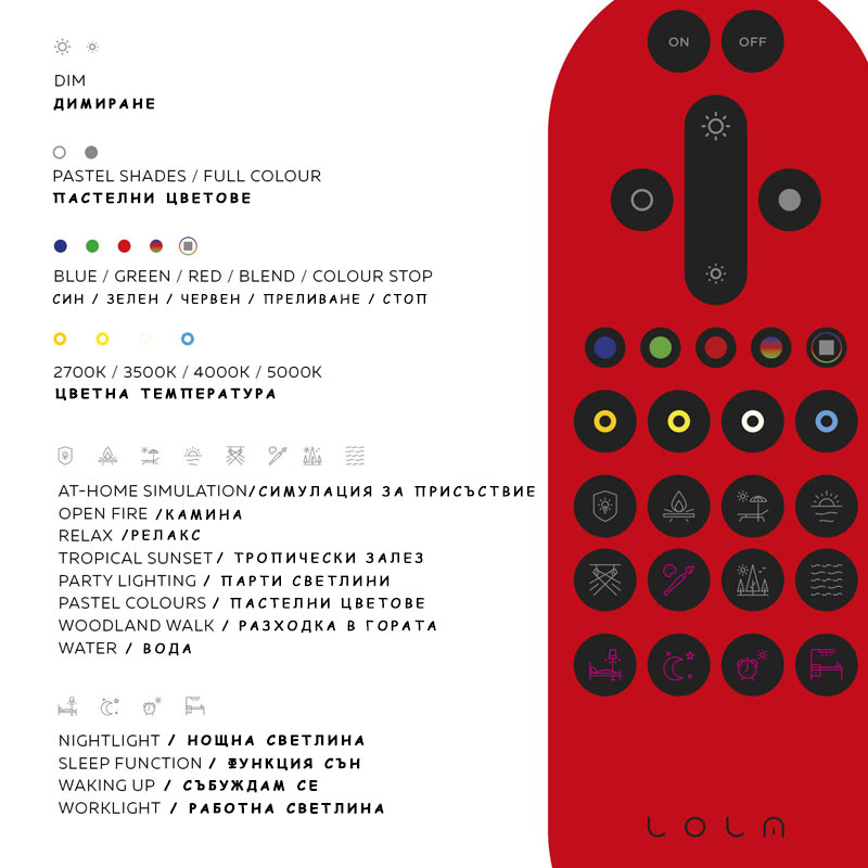 LED Крушка LOLA SMART от ново поколение. Крушката може да бъде управлявана чрез безплатно приложение на вашия смарт телефон, чрез дистанционно, включено в комплекта или гласово чрез всички поколения на Alexa Amazon или Google Home. Можете да променяте цветната температура на светлината от топло бяла към неутрална (дневна), да променяте цвета - червен, зелен, син и техните производни цветове, както и лесно и удобно да включвате и изключвате. Производител Leuchten Direkt, Германия.