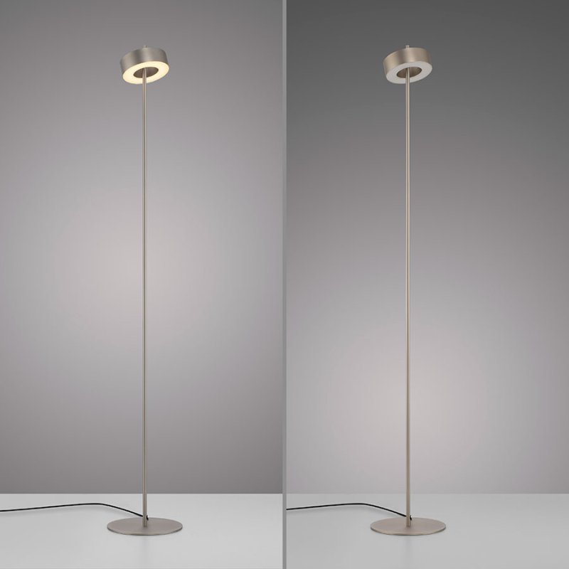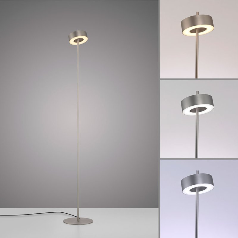 LED Лампион Q-ROTATE е иновативно осветително тяло, което съчетава модерен дизайн и интелигентни технологии. С метална основа в цвят алуминий и разсейвател от акрил, този лампион впечатлява със своята кръгла форма, която безпроблемно се вписва в съвременния интериор. Подходящ е за осветление във всекидневна, коридор или спалня.