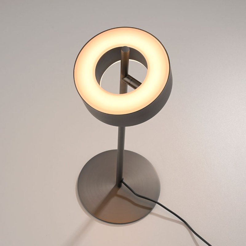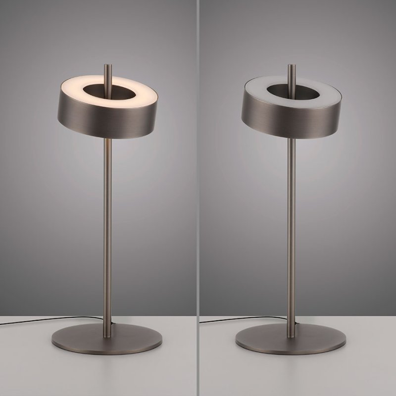 LED настолна лампа Q-ROTATE е иновативно осветително тяло, което съчетава модерен дизайн и интелигентни технологии. С метална основа в кафяв цвят и разсейвател от акрил, тази лампа впечатлява със своята кръгла форма, която безпроблемно се вписва в съвременния интериор. Подходяща е за осветление във всекидневна или спалня.