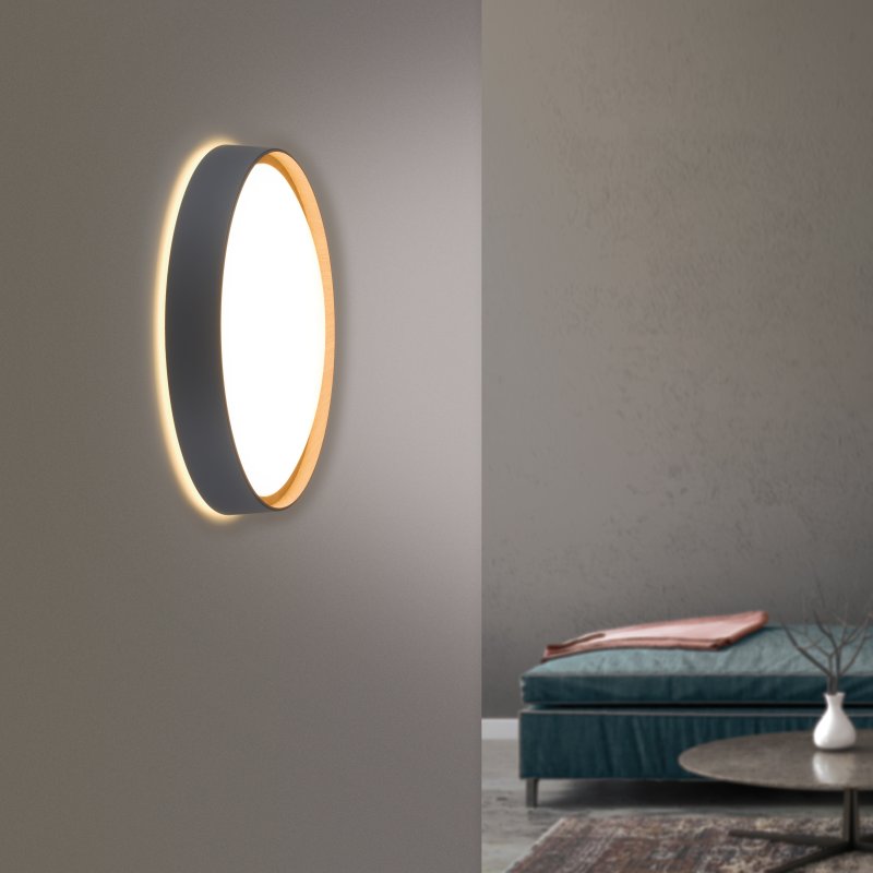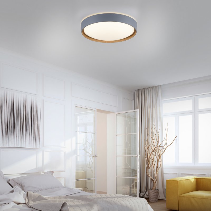 LED Плафон Q-EMILIA е модерно осветително тяло, което съчетава изчистен дизайн и функционалност. Изработен от метал в сив цвят отвън и дървесен декор отвътре, този плафон придава топлина и стил на всеки интериор. Подходящ е за осветление във всекидневна, спалня, коридор или офис.