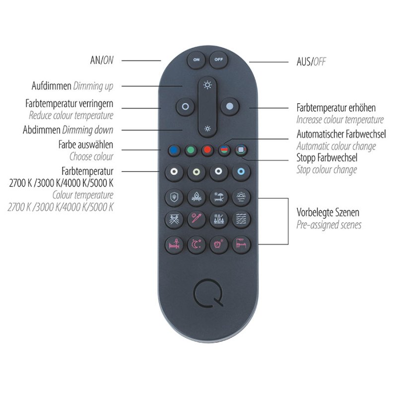 Благодарение на CCT регулиране можете да настроите цветната температура от топло бяло (2700K) до студено бяло (5000K), съобразно желаната атмосфера. Вградената RGB функция дава възможност да избирате измежду различни цветове, с които да поставите специални акценти и да създадете уникална светлинна среда.