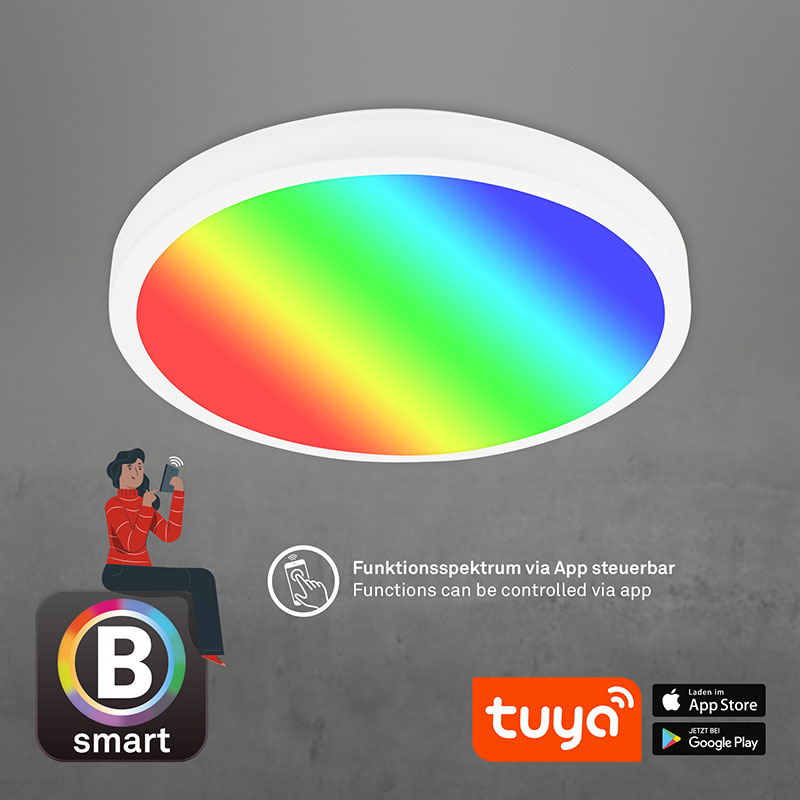 Плафонът е с включен LED модул с мощност 20W и яркост от 2100 лумена. Той осигурява добре разпределена светлина в помещението, която можете да контролирате според вашите нужди и настроение. С RGB LED светлината, можете да избирате от богата гама от цветове, които се променят според вашите желания.