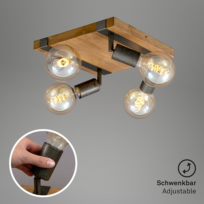 Осветително тяло - спот във винтидж стил Wood basic, изработен от дърво и дифузер в черен цвят. Тялото е с въртящи се глави за прецизно насочване на светлината. Дизайнът на спота е подходящ за осветление за всекидневна, осветление за коридор, осветление за заведение. Производител BRILO, Германия.
