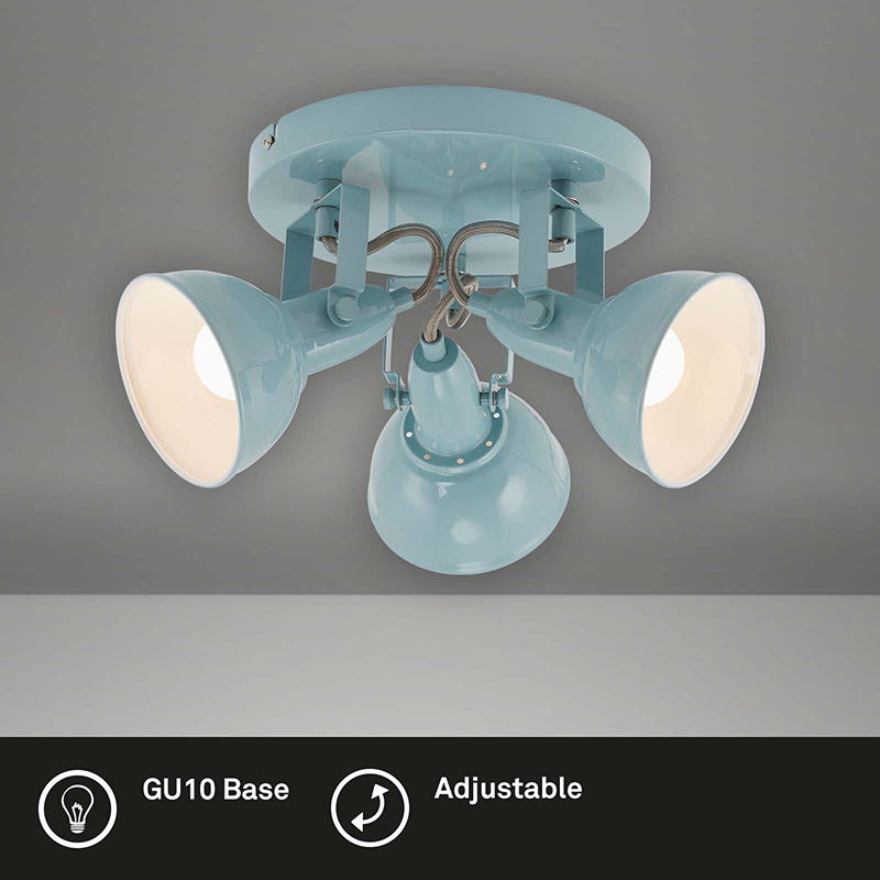 Осветително тяло - лампа за таван, изработена от метал в бял цвят. Главите на спота са подвижни за прецизно насочване на светлината. Дизайнът на осветителното тяло е подходящ за осветление за всекидневна, осветление за коридор, осветление за заведение. Производител BRILO, Германия.