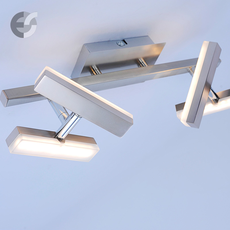 Осветително тяло - стилен и модерен спот, изработен от метал в цвят матиран хром и акрилни насочващи се разсейватели. Спотът е от серия осветителни тела Rico. Подходящ за осветление на всекидневна, осветление на трапезария, осветление на коридор и спалня. Производител Leuchten Direkt, Германия.
