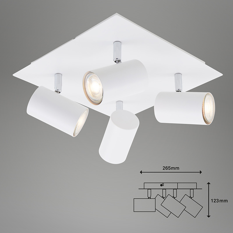 Насочваща се лампа за монтиране на таван RUN. Спотът е изработен от метал в бяло. Главите на лампата са подвижни за прецизно насочване на светлината. Дизайнът на осветителното тяло е подходящ за допълнително осветление за всекидневна, осветление за спалня, осветление за хотел. Производител BRILO, Германия.