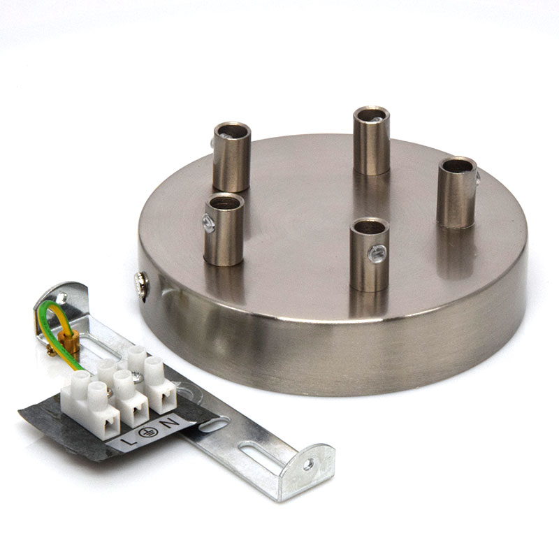 Розетка за монтаж на тавана с пет извода. Розетката е с размери -D: 12 x H:2.5. В комплекта е включен метален стопер и метална пластина. Чрез опцията „комбинирай“ (над цената на артикула), можете лесно и удобно да направите лампа по ваш вкус и предпочитание. Комбинирайте розетката с различни кабели, глави и абажури и създайте осветително тяло със собствен дизайн. Производител Coup Light.