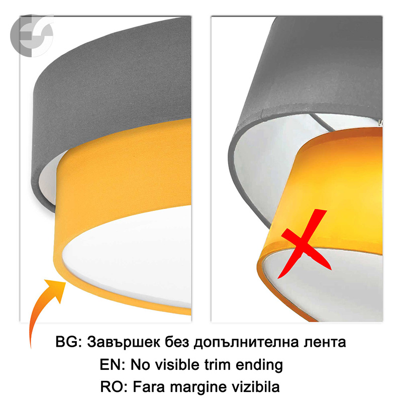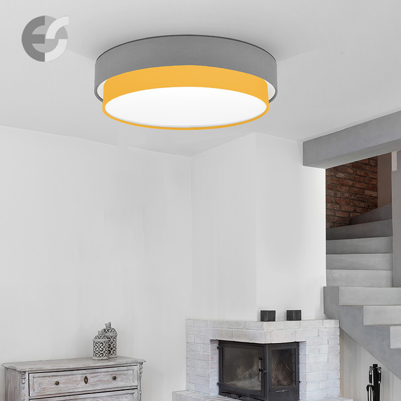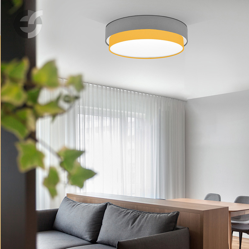 Осветително тяло - плафон CAKE, изработен от метална основа, два текстилни абажура и бял PVC разсейвател. Плафонът се предлага в над 50 различни комбинации от цветове. Изберете най-подходящата за вас комбинация от цветове и добавете към всяка стая модерен акцент и светлина. Осветителното тяло е подходящо за осветление на спалня, осветление за всекидневна, осветление за детска стая, осветление за кухня, осветление за коридор.