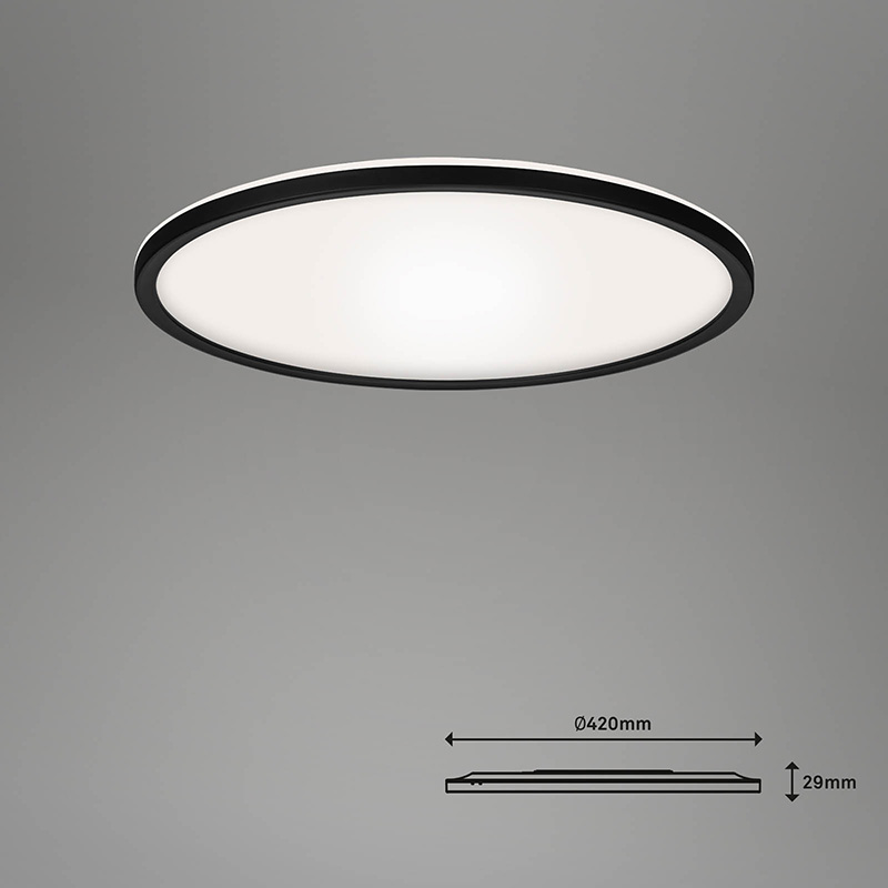 Осветително тяло - умен лед плафон Slim s, много тънък, изработен от метална основа и пластмасов разсейвател. Плафонът е част от серията за умен дом B SMART. Можете да контролирате осветителното тяло гласово чрез Amazon Alexa или Google Home; чрез приложението; чрез дистанционно или по класическия начин, чрез ключа на стената. Лесно и удобно включвайте и изключвайте осветлението; променяйте цвета на светлината от топла (2700K) към студена (6500К); регулирайте силата на светене от слабa към силнa светлина и обратното; настройте таймер за изключване; изпозлвайте функцията за нощен режим. Плафонът е с функция памет, чрез която помни вашите настройки. Дизайнът на осветителното тяло е подходящ за осветление за всекидневна, осветление за коридор, осветление за спалня. Производител BRILO, Германия.