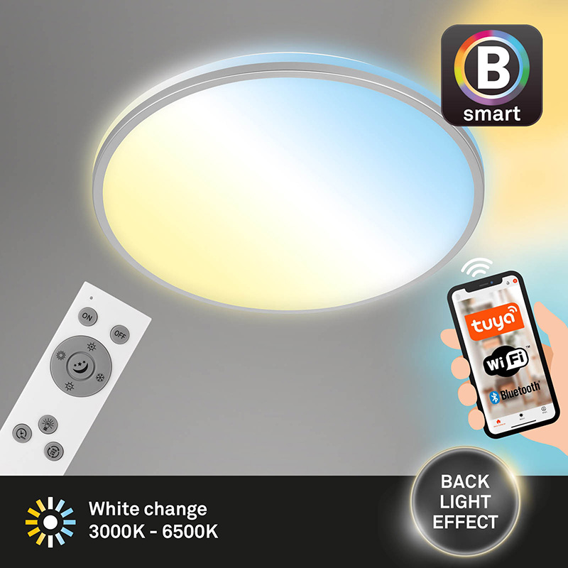 Осветителното тяло е с вграден LED модул - 42W / 4500lm /20 000h / 3000К - 6500К / Ra >= 80. Работи с WiFi + Bluetooth, IOS и Android, Amazon Echo и Google Home.