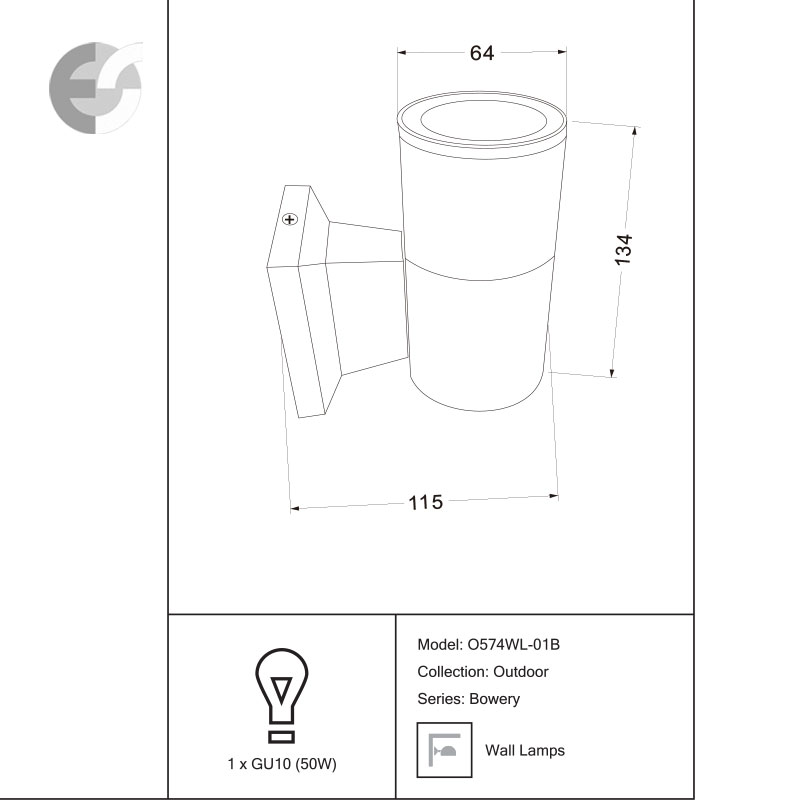 Аплик Bowery е изработен от алуминий в черен цвят и е с цилиндрична форма. Осветителното тяло е с уплътнено предпазно стъкло, което осигурява допълнителна защита. Фасадната лампа е устойчива на корозия и температурни промени, което я прави подходяща за дългосрочна употреба на открито. Осветителното тяло свети нагоре, създавайки стилен и ефектен акцент върху фасадата. Апликът е с IP54 защита (5 - ограничена защита от прахови частици и пълна защита от контакт; 4 - защитен от пръскане от всички посоки), което го прави подходящ за външни условия като балкони, тераси и входни пространства.Производител MAYTONI, Германия.