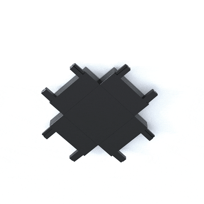 Конектор за магнитно релсово осветление от серия SLIM Magnetic Track System. Конекторът е с X-форма и служи за свързване на четири магнитни шини с каталожен номер SLIMMT6-3M-BK.