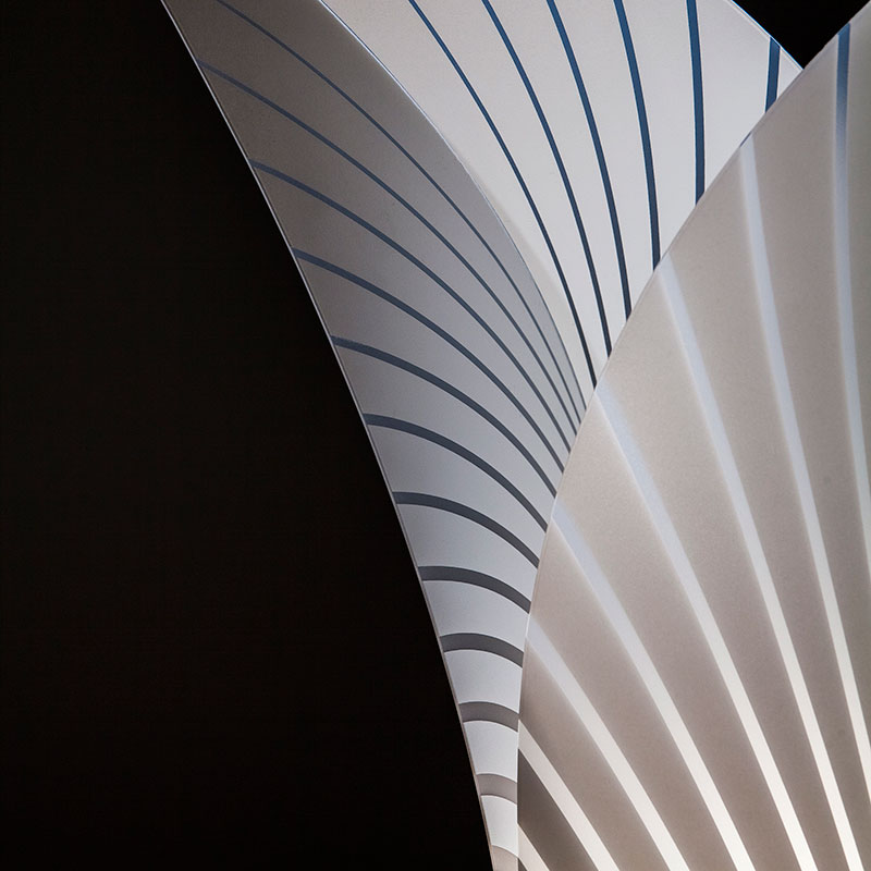 LAS PALMAS е дизайнерски лампион, създаден от Клементoни Йонас. Неговият изтънчен силует е вдъхновен от слънчевите лъчи и формите на палмовите листа, огряни от светлината край Атлантическия океан. Тази естетика е пресъздадена чрез триизмерна интерпретация на лист от Opalflex®, превърнат в скулптурна форма с минималистичен и същевременно поетичен дизайн.