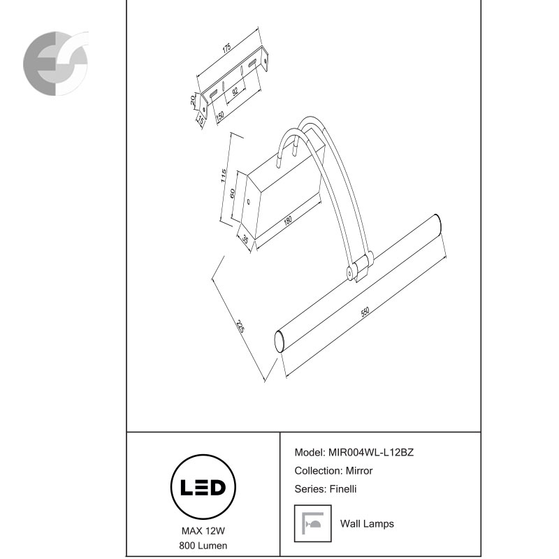 LED Аплик за картина Finelli MIR004WL-L12BZ