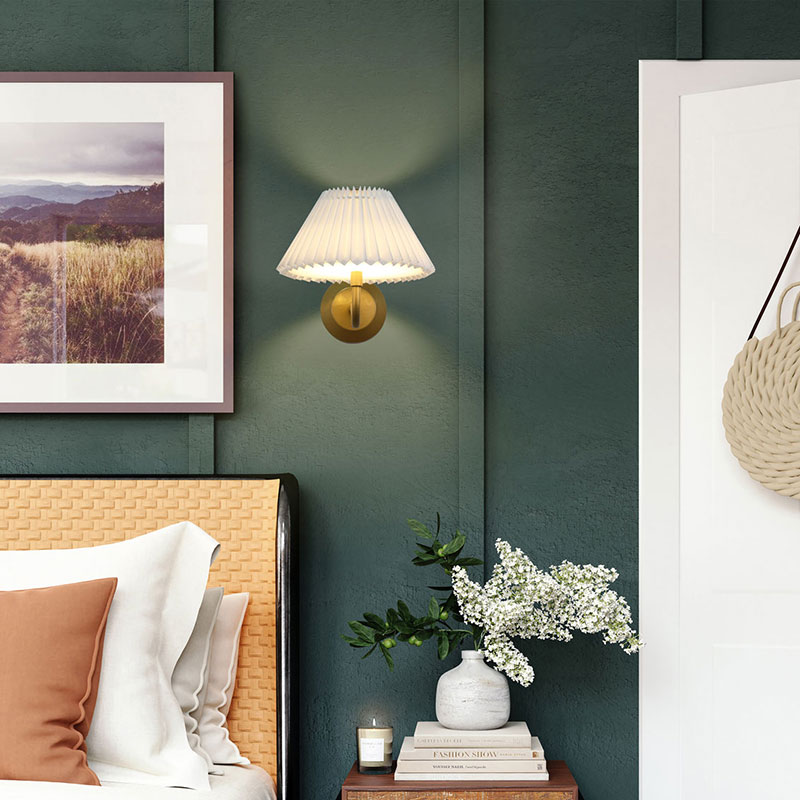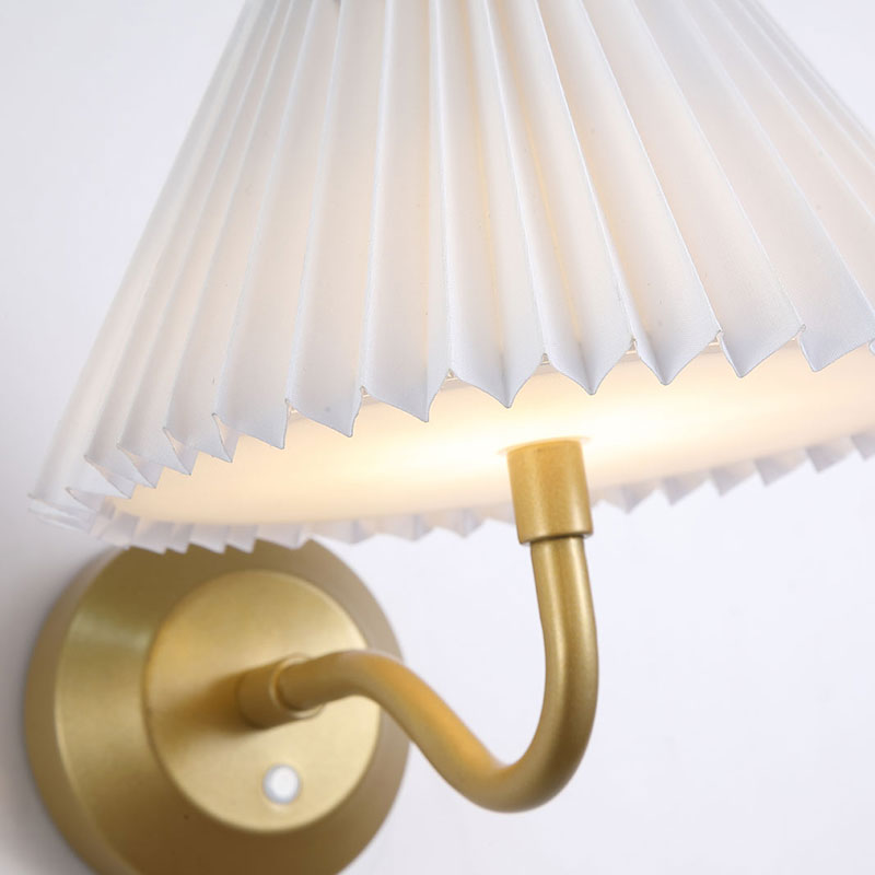 LED аплик Danish е елегантна акумулаторна стенна лампа, вдъхновена от класическия скандинавски стил. Изработен е от метал с изискано златно покритие и декоративен плисиран абажур в бял цвят, който придава мекота и уют на интериора. Дизайнът съчетава изчистена форма и топло излъчване, което прави аплика подходящ както за класически, така и за модерни пространства.