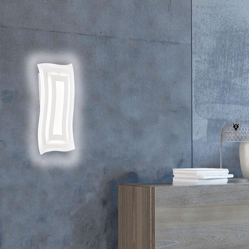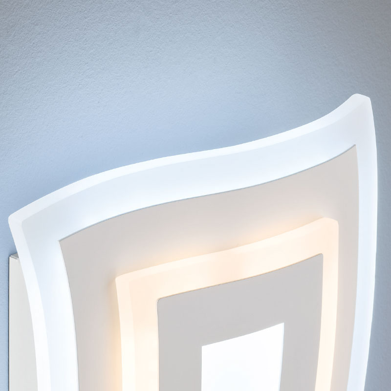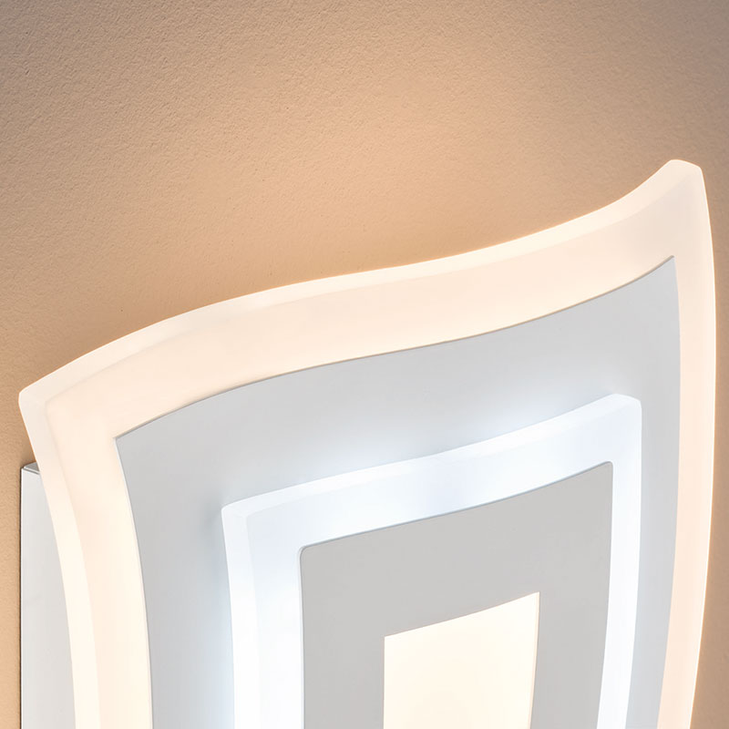 LED аплик Gorden, изработен от метал с бяло матирано покритие и разсейвател от акрил. Стенната лампа се отличава с модерен вълнообразен дизайн и концентрични правоъгълни форми, които създават интересна визия, превръщайки я в произведение на изкуството за вашия интериор. Осветителното тяло е с вграден CCT модул, който ви позволява плавно регулиране на цветната температура от топла (2700K) до студено - синя светлина (6500K). Апликът е с функция за димиране, чрез която лесно увеличавате или намалявате силата на светлината, според желаната атмосфера.