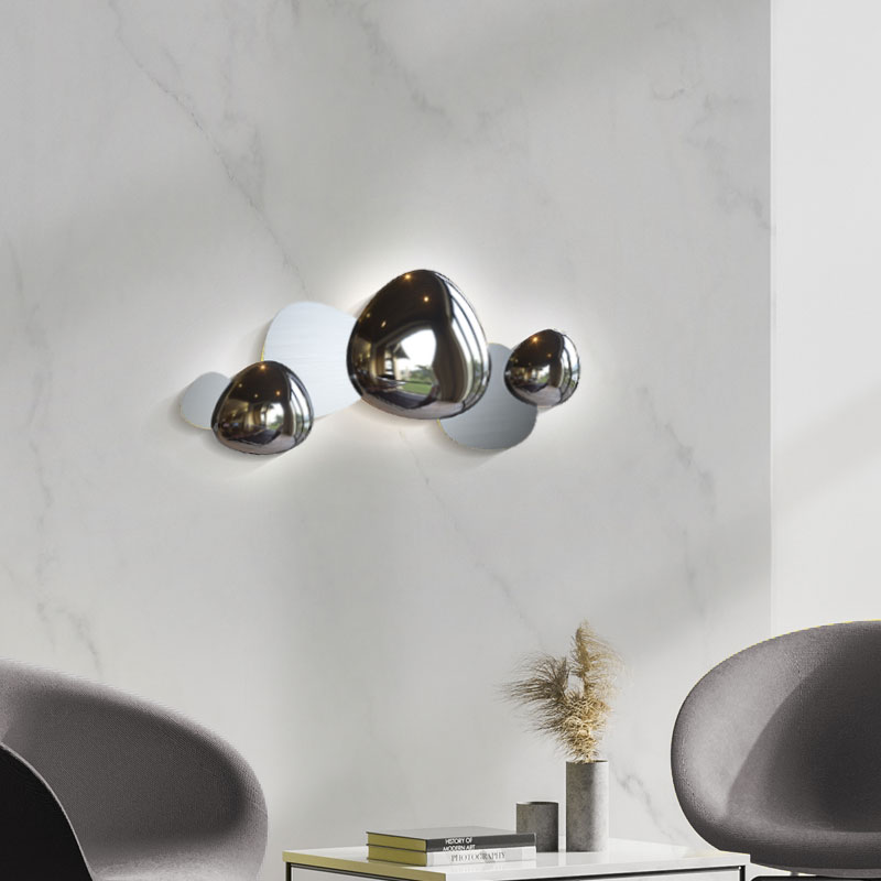 LED апликът Jack-stone е изработен от неръждаема стомана, предлаган в два варианта - златист или никелов цвят. Лампата за стена впечатлява с уникалната комбинация от матов и огледален метал, която създава интересен контраст. Осветителното тяло се отличава с артистичен дизайн от неправилни кръгове, преплетени в линейна форма, напомнящи абстрактна скулптура.