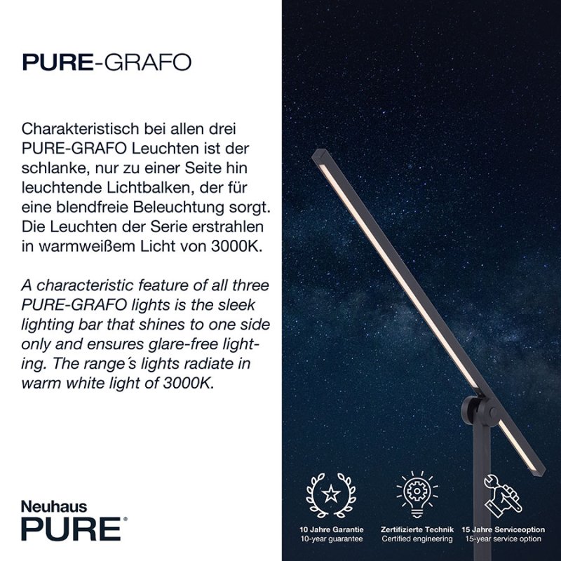 С 10 години гаранция от производителя, LED Аплик PURE Grafo предлага надеждност и дълготрайност, което го прави сигурна инвестиция за осветление с високо качество.