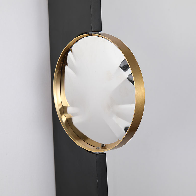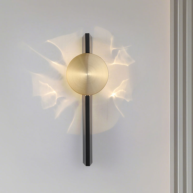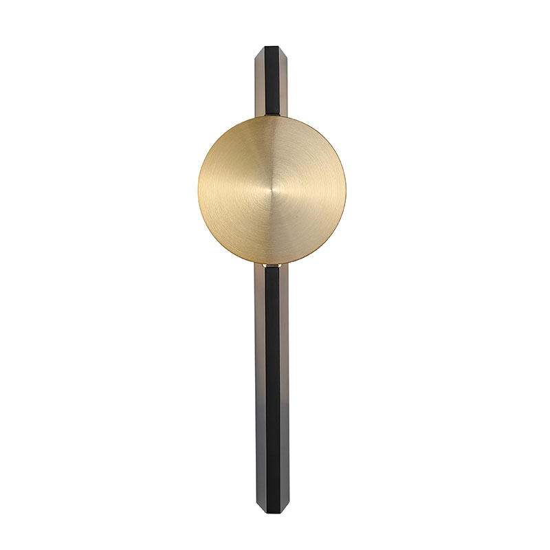 LED аплик Shield е изработен от метал в стилна комбинация от пясъчно черно и златисто покритие, която придава модерен и елегантен акцент на стената. Лампата за стена впечатлява с кръгъл декоративен елемент и вертикална линия, като създава изразителен светлинен ефект и мека игра на светлина около осветителното тяло.
